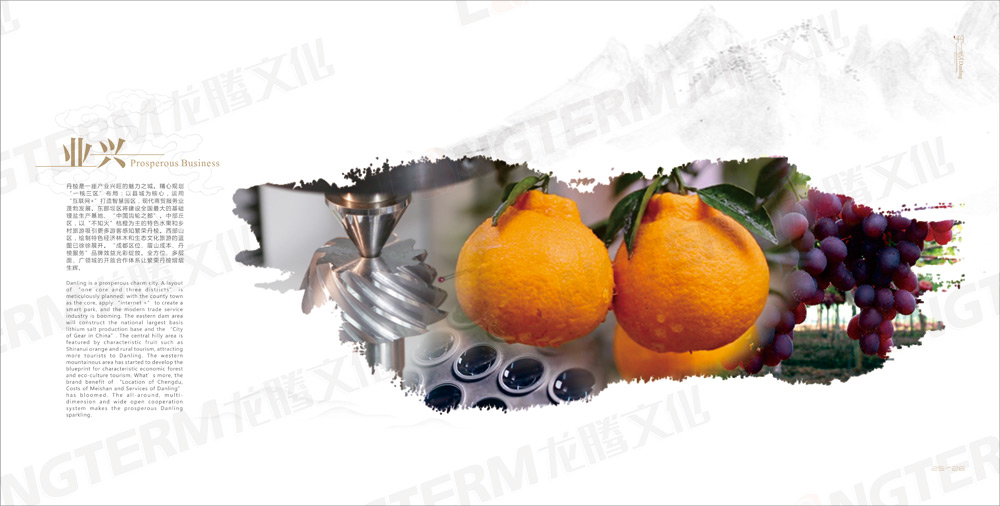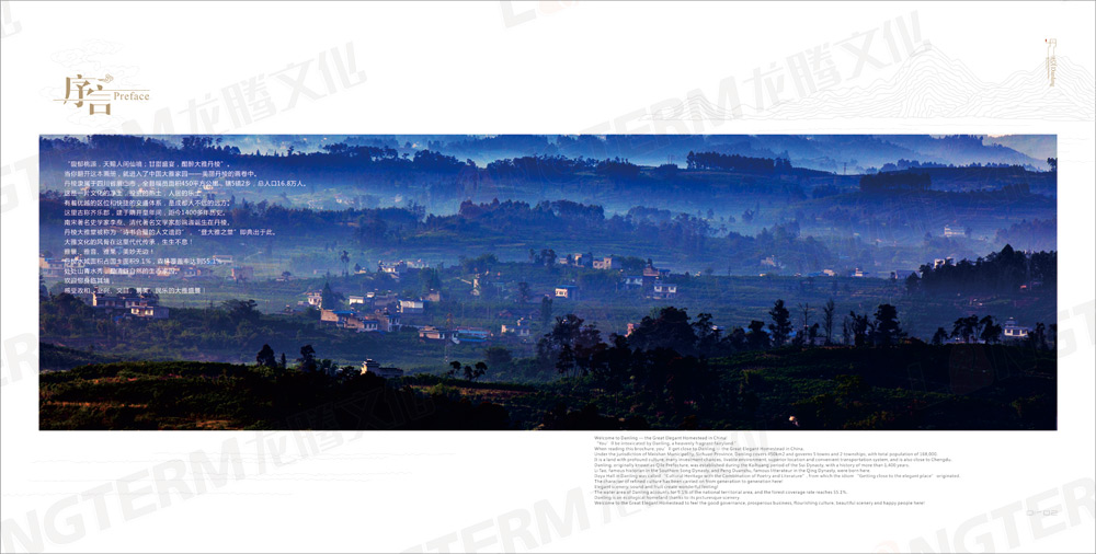 丹以為質(zhì),棱以為形,天開壯麗賜佳名,是為丹棱。本次城市形象宣傳畫冊(cè),分為“序言”、“丹棱名片”、“區(qū)位交通”、“政和”、“興業(yè)”、“文昌”、“景美”、“民樂”幾大篇幅,主要以丹棱的美景為背景,介紹當(dāng)?shù)氐漠a(chǎn)業(yè)、旅游、文化、政治等。