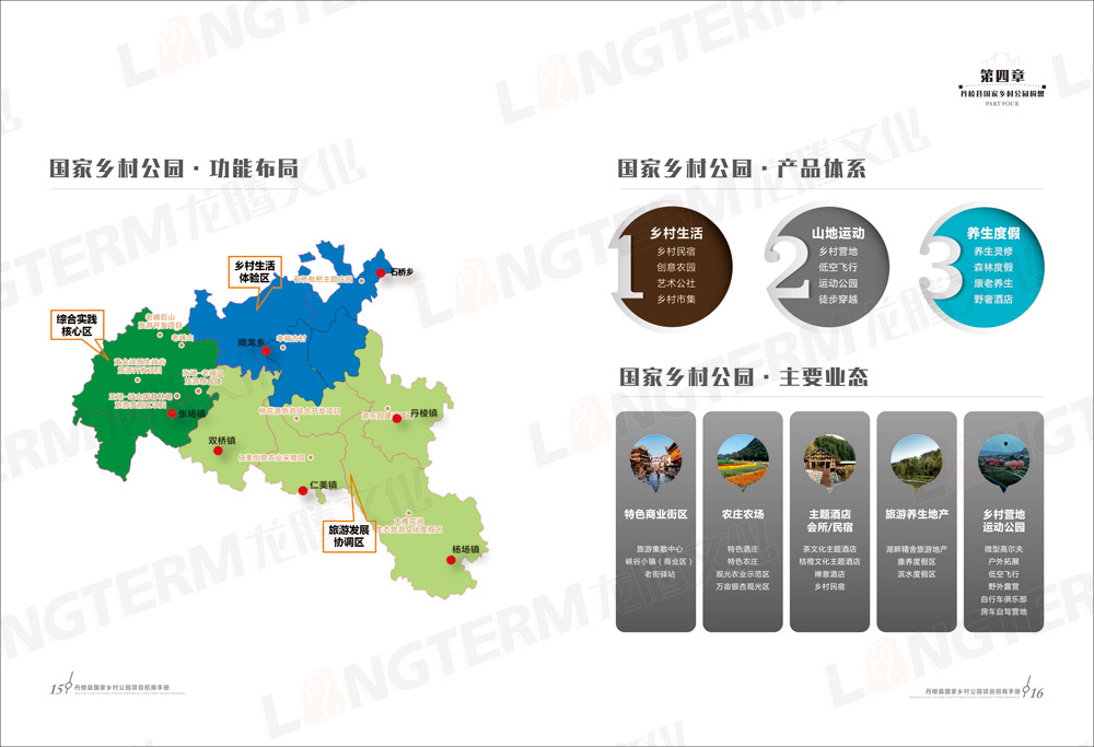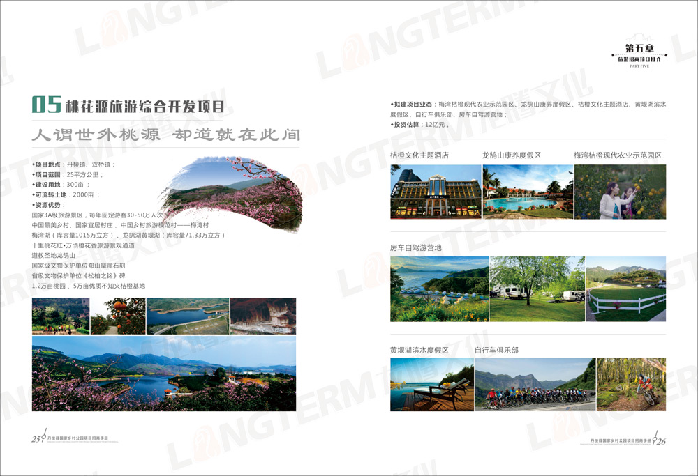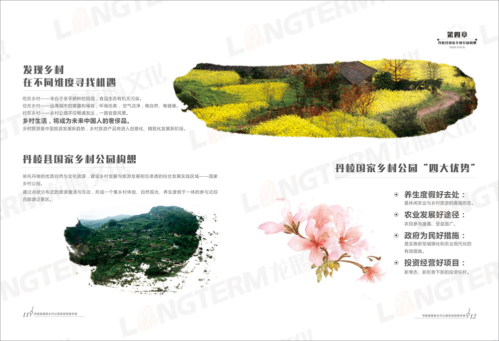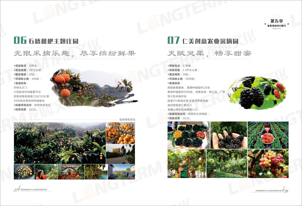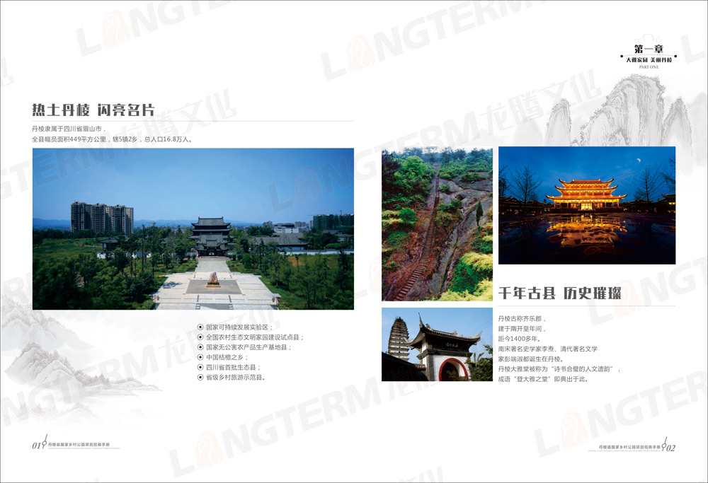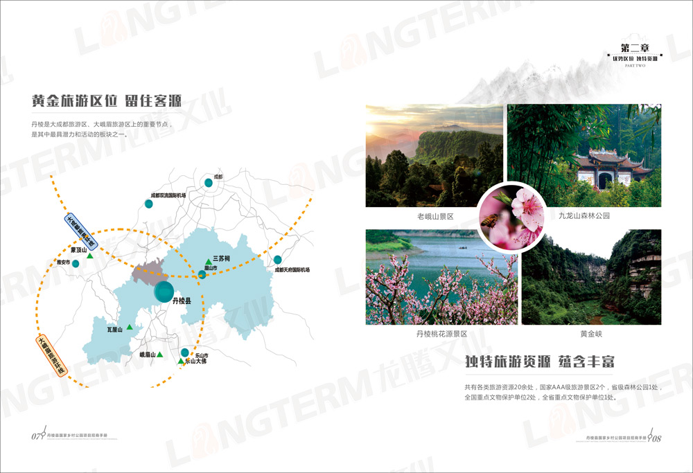招商畫冊包含“大雅家園 美麗丹棱”、“優(yōu)勢區(qū)位 獨特資源”、“政策優(yōu)惠 服務貼心”、“丹棱縣國家鄉(xiāng)村公園構想”、“旅游招商項目推介”等共5大篇章,除了設計和印刷招商畫冊外,還在畫冊的基礎上制作了H5推廣頁面。龍騰文化是一家綜合服務機構,善于利用各種資源,為客戶開拓更廣闊的營銷渠道。