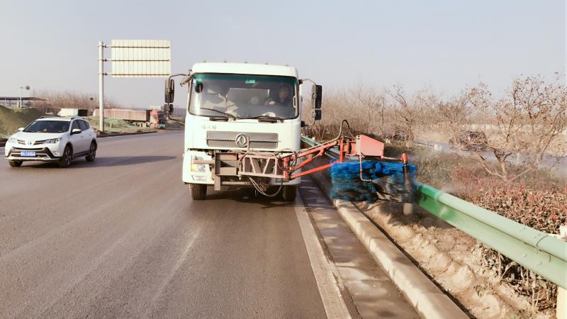 為應(yīng)對當(dāng)前嚴(yán)峻形式,養(yǎng)護(hù)公司經(jīng)過緊急磋商,制定出詳細(xì)計(jì)劃,一方面針對路況揚(yáng)塵采取24小時(shí)不間斷灑水,同時(shí)加強(qiáng)人工、機(jī)械的保養(yǎng)力度。另一方面進(jìn)行路況調(diào)查,積極擬定方案對路面病害進(jìn)行小修整治,計(jì)劃對沿線路邊石、波形板、標(biāo)牌等進(jìn)行更換,對全路段的標(biāo)線重新粉刷。為提升路域環(huán)境,工區(qū)專門調(diào)派機(jī)械車輛每天清洗綠化帶和護(hù)欄。
