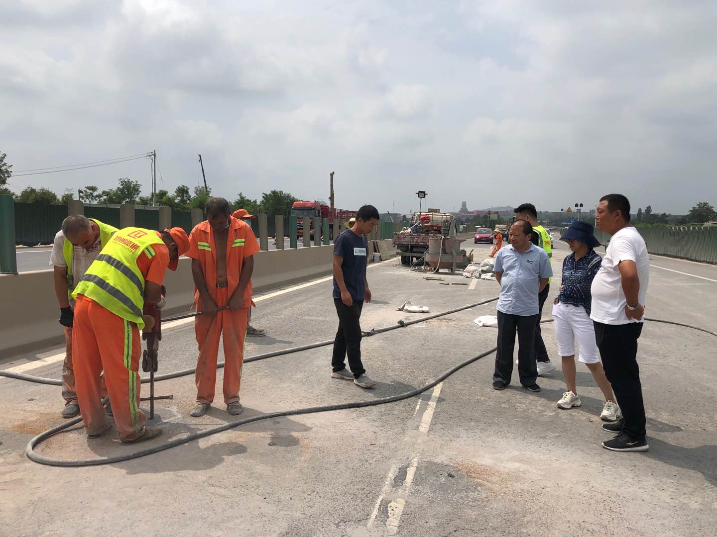 路通公司各級領(lǐng)導(dǎo)高度重視此次國評工作,要求一線養(yǎng)護人員根據(jù)工作實際,對照迎評標(biāo)準(zhǔn),按照方案中各階段安排,逐步開展各項工作。7月31日,路通公司總工李子云,工程部長嚴(yán)云飛,工程公司副經(jīng)理梁軍前往我公司G310線鄭州境須水立交橋至趙家莊段修復(fù)養(yǎng)護工程項目、S227線鄭州南四環(huán)至新鄭路面預(yù)防養(yǎng)護工程進行現(xiàn)場調(diào)研。對工程項目進展、施工技術(shù)、保通方案等進行視察督導(dǎo),并提出明確要求:加快推進項目進度,按期保質(zhì)完工,天氣炎熱且進入汛期,要尤其強化安全生產(chǎn)措施,切實杜絕安全生產(chǎn)事故,以優(yōu)異成績迎接國評。截止到目前為止,G310已完成總工程量的65%,預(yù)計8月25日完工;S227已完成總工程量的80%,預(yù)計8月10日完工。