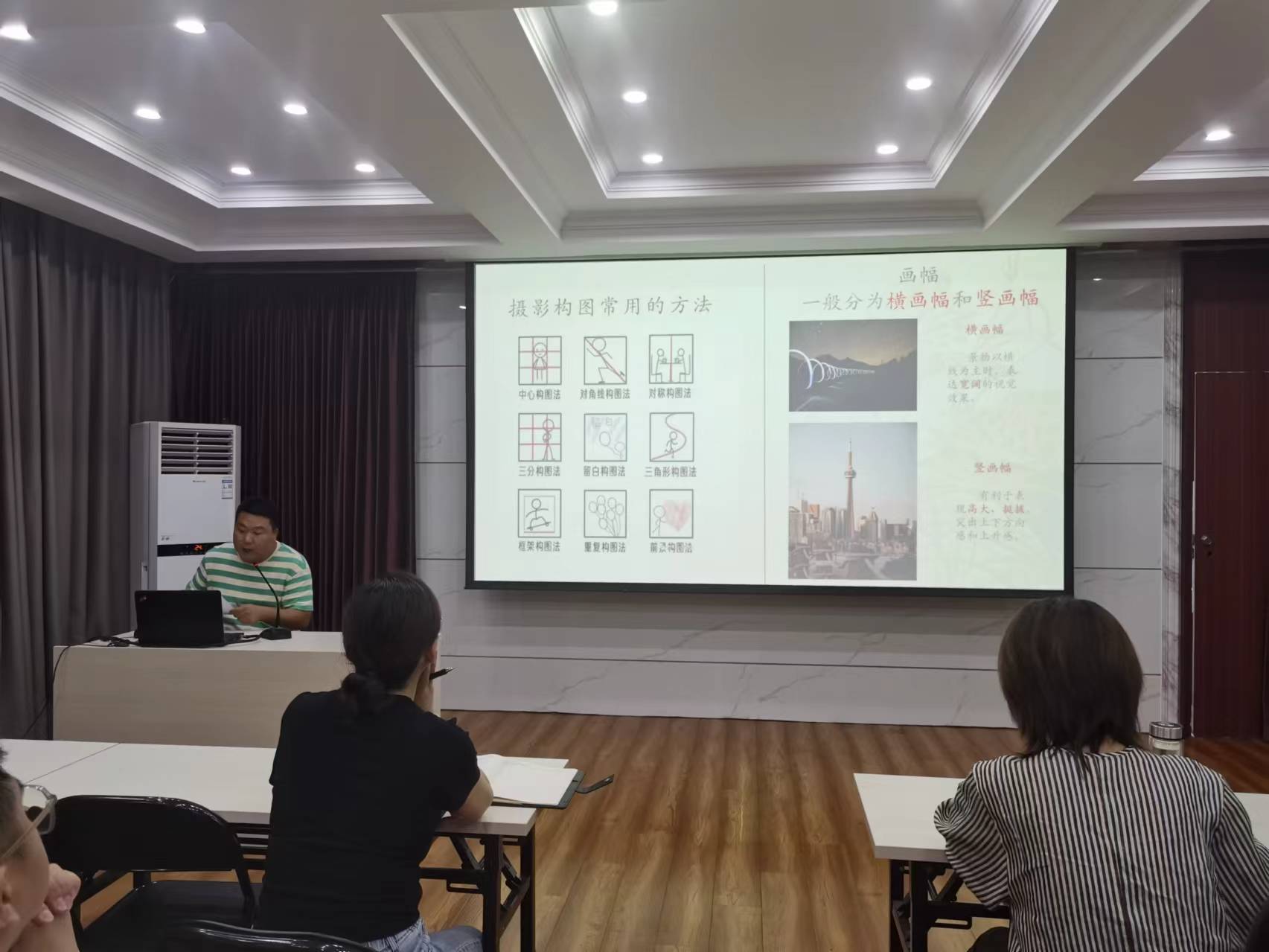 在培訓(xùn)中,徐玉武同志首先圍繞“手機(jī)攝影入門及攝影基礎(chǔ)”,向大家系統(tǒng)介紹了手機(jī)的基本照相功能、攝影構(gòu)圖、拍攝方向和拍攝角度等關(guān)鍵方面。隨后,借助大量攝影實(shí)務(wù)案例,詳細(xì)講解了大小型會(huì)議與公務(wù)活動(dòng)中,如何抓拍公務(wù)場景及主要領(lǐng)導(dǎo)的適合角度,由淺入深,干貨滿滿。