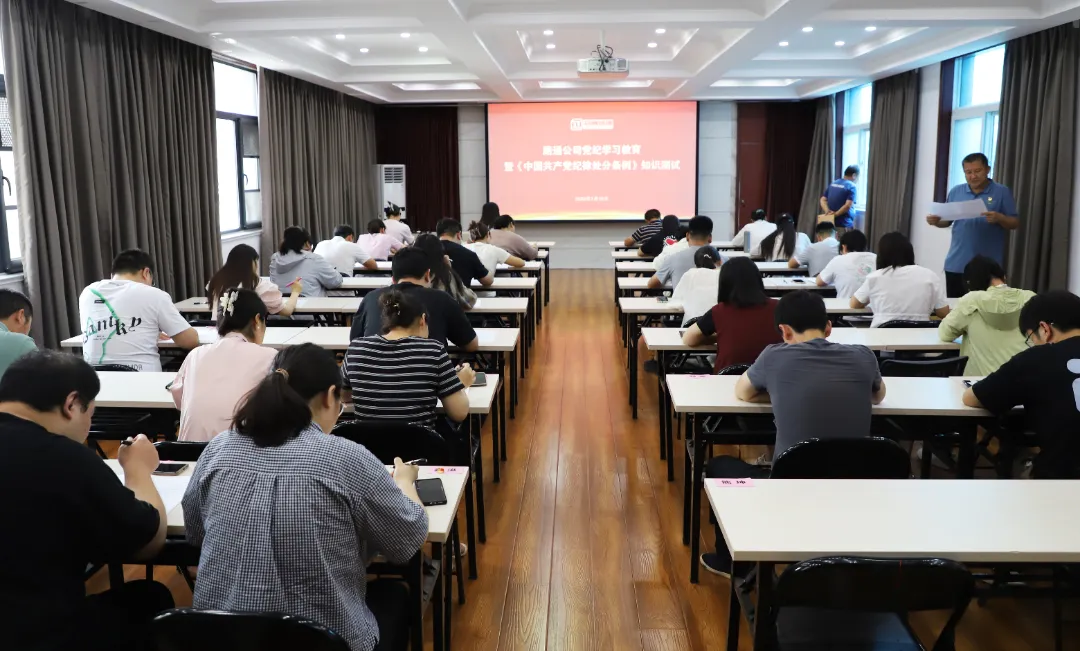 7月19日下午,為切實(shí)檢驗(yàn)公司黨員對(duì)《中國(guó)共產(chǎn)黨紀(jì)律處分條例》學(xué)習(xí)掌握情況,推動(dòng)黨紀(jì)學(xué)習(xí)教育進(jìn)一步走深走實(shí),按照公司黨委安排部署,黨委辦公室組織開(kāi)展黨紀(jì)學(xué)習(xí)教育暨《中國(guó)共產(chǎn)黨紀(jì)律處分條例》知識(shí)測(cè)試,共有來(lái)自公司各支部的40余名黨員參加。